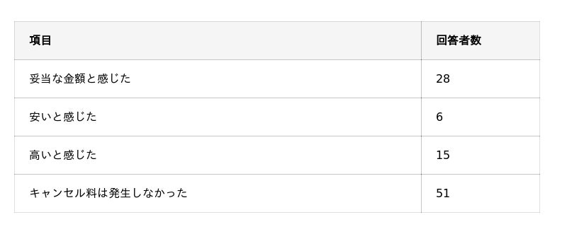- キャンセル料が発生しなかったケースが半数以上だが、キャンセル料発生時も半数以上が金額を妥当だと感じている。