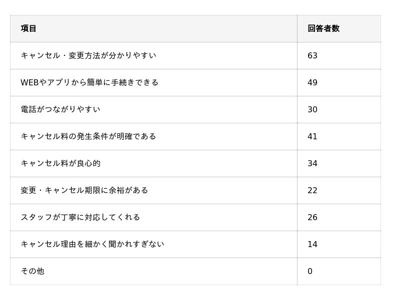 - キャンセル時のスタッフ対応も8割ほどが納得感を抱いている。