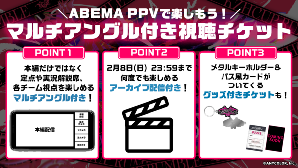 配信:ABEMA 全編無料配信 + マルチアングル有料視聴チケットあり