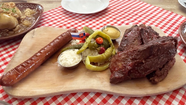 お酒だけではなく、料理もかなり安いです。例えばトラディショナルなスロバキア料理を出すレストランに入ったところ、豚のスペアリブ(600g)が17.90ユーロ。大きな焼ソーセージ(120g)が8ユーロでした。もちろん1人では多すぎるので、数人でシェアして食べたのでひとりあたりの金額はさらに安くなってます。
