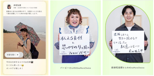 SNSで「#OneMoreChoice」をシェアできる機能も用意し、“我慢に代わる選択肢”について考えるきっかけづくりを狙う。