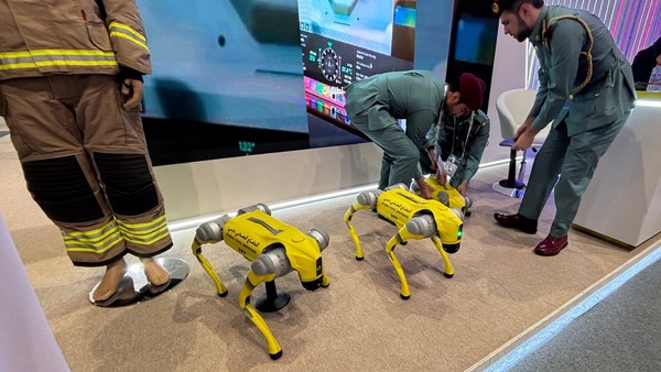 ドバイのロボット企業Mangobotは、生成AIを搭載したヒューマノイドや軍用グレードの犬型ロボットなどを展示した。主力製品であるA2ヒューマノイドは、インタラクティブなサービスに対応する。外科手術などの複雑なスキルを学習することができるという。