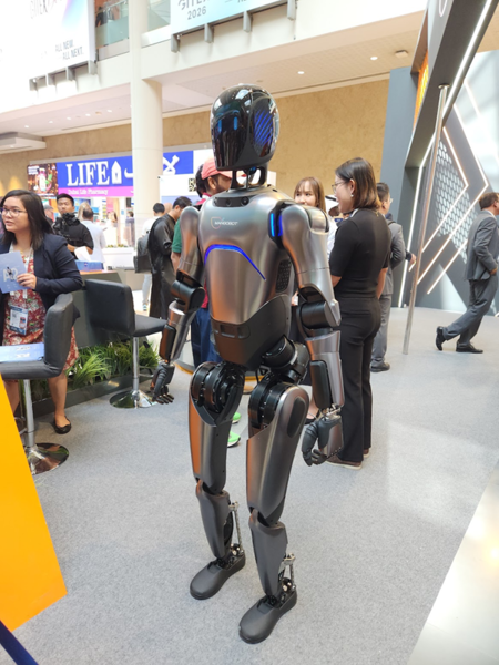 会場のメイン通路の一角に、ヒューマノイドタイプのロボットが集中的に展示されていたコーナーは、ロボットコーナーではなく、「フィジカルAI」という表記が。形を持ったAIがロボットだという位置付けであり、物理的な身体を持つ人工知能(AI)としての「Embodied AI」という表現も多く見られた。