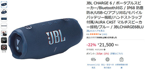 JBLのポータブルスピーカー「CHARGE 6」が、Amazonセールに登場しました。参考価格27,500円から23%オフの21,180円で販売中です。