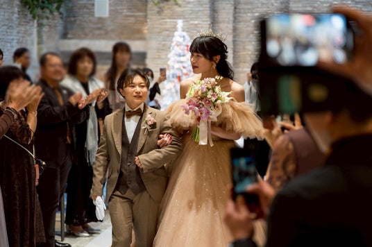 “誰もが幸せな家庭を築ける社会へ”というスローガンを掲げ、生涯パートナーを求める性的マイノリティの仲人型縁結びを行う、一般社団法人日本LGBTサポート協会(所在地:京都市下京区、代表理事:松村寿代、以下 協会)は、2025年12月11日(水)、協会で結ばれたトランスジェンダーカップルによる公開挙式「GIFT~愛が繋ぐ未来~」 をHouse of OMOTESANDO(東京都渋谷区) にて開催しました。