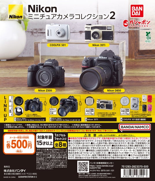 株式会社ニコンの子会社、株式会社ニコンイメージングジャパンは、同社が運営する「ニコンプラザ(東京・大阪)」にて、株式会社バンダイ ベンダー事業部(本社:東京都台東区)が展開するオリジナルカプセルトイブランド「ガシャポン(R)︎」とのコラボレーションで生まれたミニチュア化シリーズの新製品「Nikon ミニチュアカメラコレクション2」を販売開始します。