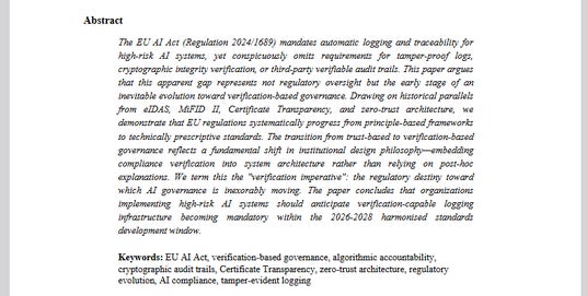 VeritasChainは、監査可能なAIインフラの実用性と必要性を立証する、以下2本の研究論文をZenodo(DOI付)にて公開しました。