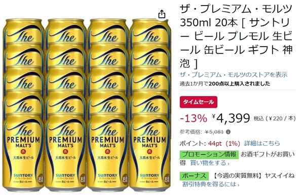 「ザ・プレミアム・モルツ 350ml 20本」がAmazonタイムセールに登場!