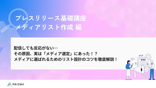 その現状を打破するため、PR支援実績1,000社以上を誇る株式会社PRIZMAは、現場のノウハウを体系化した決定版資料『プレスリリース基礎講座|メディアリスト作成編』を公開しました。