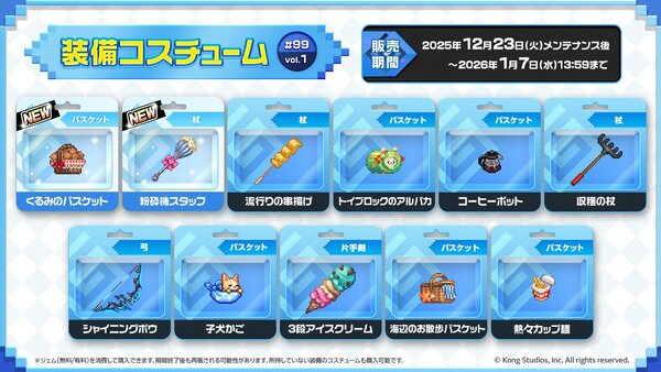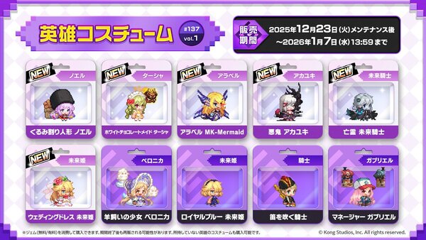 英雄および装備の新規コスチュームがショップに登場。既存のコスチュームの一部とあわせて期間限定で販売する。この機会にぜひ英雄たちのおしゃれを楽しもう。販売期間は、2026年1月7日13時59分まで。