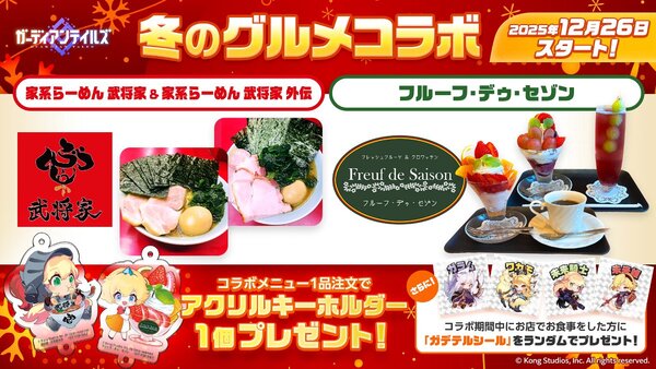 『ガーディアンテイルズ』初となるグルメコラボが、12月26日より秋葉原の人気店3店舗で開催。オリジナルコラボメニュー、描き下ろしアクリルキーホルダー、ガデテルシールを用意している。
