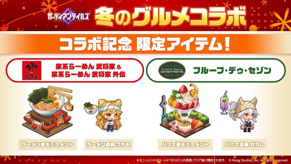 さらに、今回のグルメコラボを記念して、ゲーム内にワカモ&ガラムのコスチュームと、コラボ店舗をモチーフにしたモニュメントが登場。獲得方法は、ゲーム内や公式サイトのお知らせを確認してほしい。開催期間は、2025年12月26日~2026年1月31日まで。
