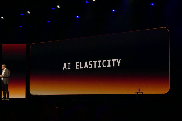 続いて、ブラウン氏が掲げたのは「AI ELASTICITY(AIの弾力性)」というキーワードだ。「ワークロードの種類が推論に変わった。この20年間培ってきた従来のコンピューティングと変わってきた」とブラウン氏は語る。今までクラウドがもたらしてきた弾力性とミスマッチが起こってきたわけだ。「需要が瞬時に急増し、失敗のコストが高い世界。一歩間違えると、コストは高く付いてしまう。でも、AWSに求められる柔軟性、効率性、応答性は必要になる」とブラウン氏は語る。