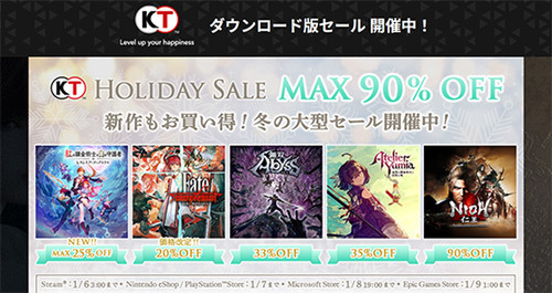 コーエーテクモゲームスは現在、主要なデジタルストアにて、ダウンロード版タイトルが最大90%オフとなる「Holiday セール 2025」を開催中です。