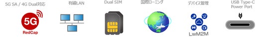 国内主要4キャリアの周波数やローカル5G、プライベートLTE、sXGPに対応。また海外向けの周波数対応と、CE・FCC・UKCA海外の認証取得でグローバル利用が可能に。