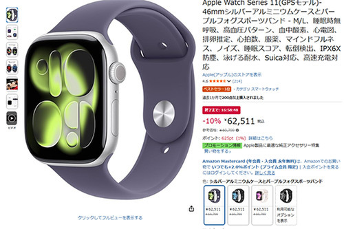 【タイムセール】Apple Watch Series 11が10%オフ! 健康管理と睡眠チェックを支える最新モデル