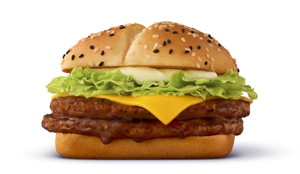 2枚のポークパティを甘辛いてりやき風味のソースと絡め、甘みのあるマヨソース、コクのあるチェダーチーズとともに、こちらも特製バンズでサンド。