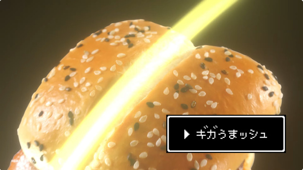 販売されるのは、「ザク切りポテト&肉厚ビーフ やみつきコンソメペッパーマヨ(560円~)」、「ホットチリ&タルタルチキン(490円~)」、「チーズダブルてりやき(540円~)」という3種類のハンバーガー。いずれも上部のバンズに“勇者の剣技”による切れ込みが入っている。包み紙も専用のものになっていそうだ。