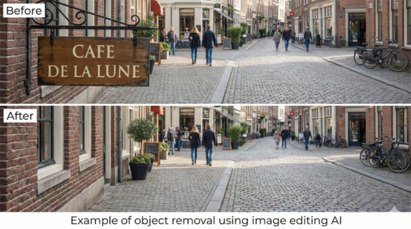 たとえば「人物を消す」「看板の文字を書き換える」「背景だけを差し替える」といった編集では、削除された部分の背後にあったはずの情報を補完したり、全体のトーンに違和感が出ないよう調整したりする必要がある。編集系AIは、こうした処理を人間の手作業に頼らず実行する。