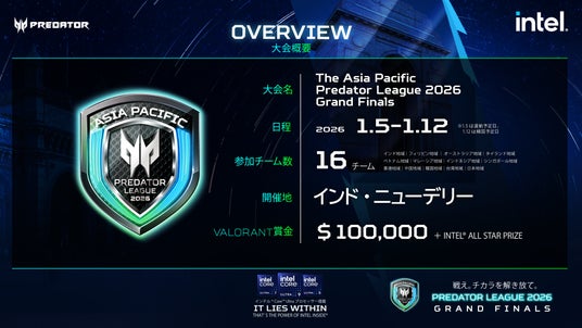 日本エイサー株式会社(本社:東京都新宿区、代表取締役社長:ボブ・セン)は、Acer Asia Pacificが主催するeスポーツ大会 The Asia Pacific Predator League 2026 Grand Finals(アジア・パシフィック プレデターリーグ 2026 グランドファイナルズ、以下「Predator League 2026」)が、2026年1月7日から1月11日まで、インド・ニューデリーにて開催されることをお知らせいたします。
