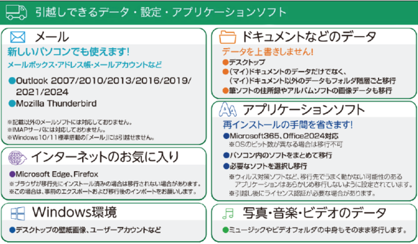 データ以外にも、インターネットのお気に入りやWindowsの環境まで、まるっと移行してくれるので、本当になにも考えることはありません。
