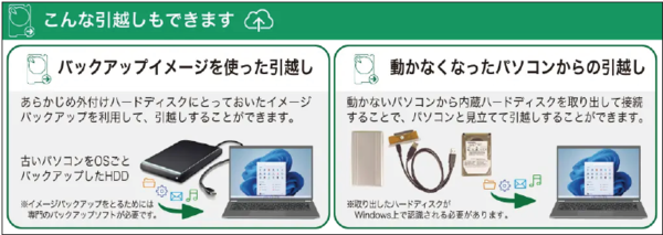 多少PCの知識が必要になりますが、壊れたPCでもストレージを取り出せれば、そこからの引っ越しもできるそうです。一度試してみては?