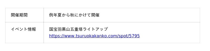 5.まさに幽玄の美 国宝羽黒山五重塔ライトアップ【夏季予定】