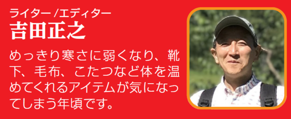 今ではこたつを使う家庭は少ないと思いますが、ゆったりとくつろげる魅力は変わりません。そんなこたつをアウトドアでも! というのが、アルペンアウトドアーズの「こたつユニット88」。こたつ布団と天板がセットになっていて、手持ちのテーブルを手軽にこたつスタイルにするというものです。熱源は付いていませんが、布団はかなり厚手で大きく(220×175cm)、シュラフのようにとても保温性が高いので、足に掛けただけでもけっこう暖まります。もし熱源が欲しい時は、湯たんぽがオススメです。