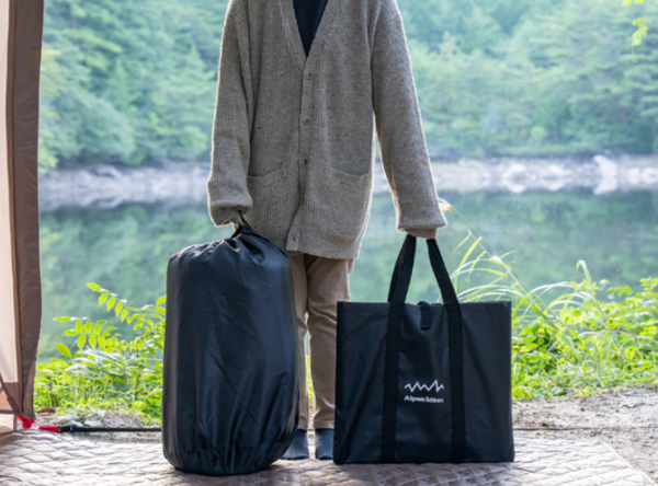 天板も布団も専用の収納袋が付属している。天板は2.4kg、布団は3kgで、オートキャンプでの持ち運びも負担になりません。