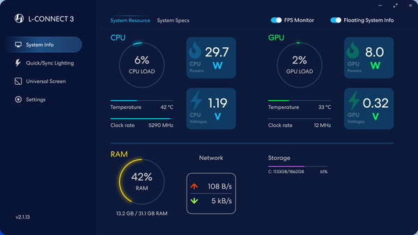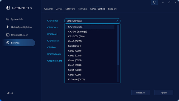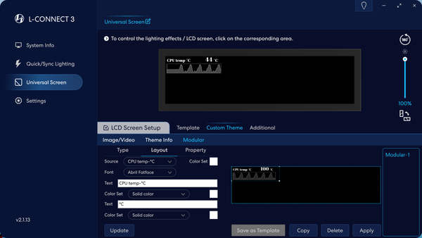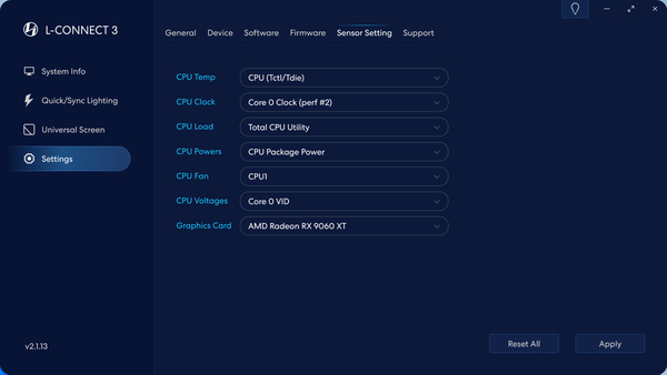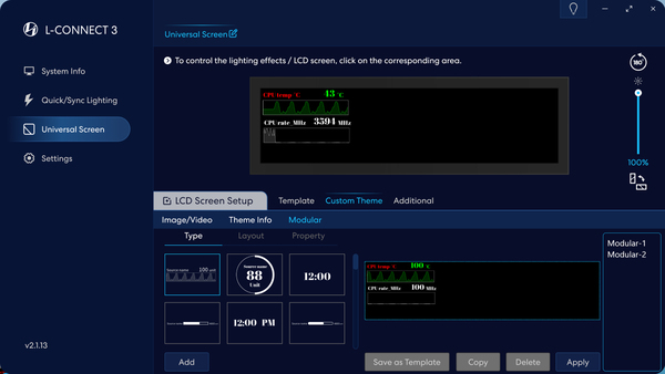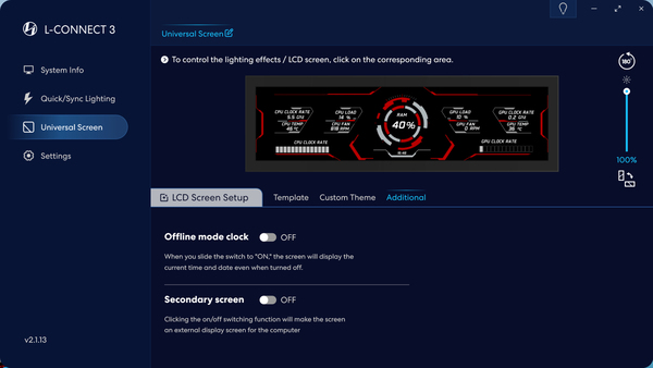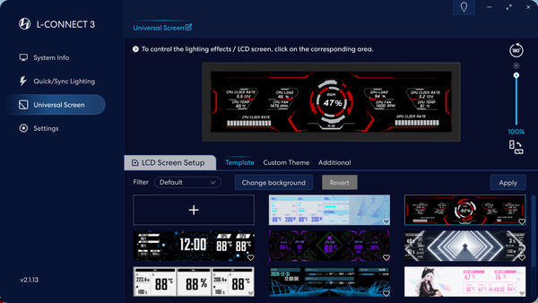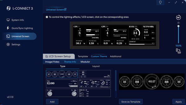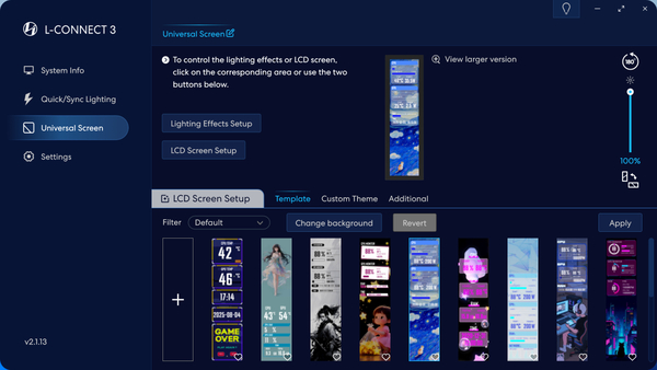 「8.8インチユニバーサルスクリーン」の制御には、Lian Li統合コントロールソフトウェアの「L-Connect 3」を使用する。この手のコントロールソフトは、マザーボードのユーティリティソフトと喧嘩することがある。「L-Connect 3」は、マザーボードのユーティリティソフトとの相性が悪いという話をあまり聞かないので、どのメーカーのマザーボードでも安心して使用できるだろう。