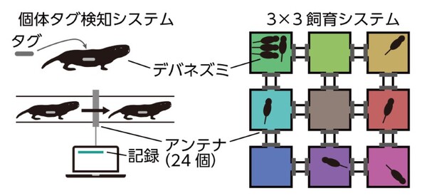 熊本大学大学院生命科学研究部の山川真徳博士研究員、東京大学定量生命科学研究所の奥山輝大教授、九州大学大学院医学研究院の三浦恭子教授らの研究グループは、群れ全体を対象にした30日間にわたる行動解析によって、ハダカデバネズミの社会全体の構造と個体間の社会的関係性を初めて明らかにしました。研究グループは、無線で個体を識別できる「RFIDタグ」を使って個体の動きをそれぞれ追跡できるシステムを開発。5つの群れ・合計102匹のハダカデバネズミの体にタグを埋め込んでその行動を観察しました。その結果、繁殖個体は群れ全体を監視する役割を果たし、社会の中心的存在であることや、非繁殖個体は「働き者」など6種類の行動型に分かれ、安定した役割分担をしていることが判明。さらに、移動の少ない個体は活動的な仲間と同じ場所で活動するのを避けるなど、行動型ごとに他の個体との関係性が異なることも見いだしました。