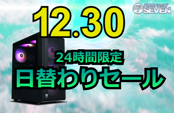 セブンアールジャパン運営のパソコンショップSEVENは、12月30日に24時間限定セールを開催する。同社の最新ゲーミングPCやデスクトップPCが最大で101,000円オフとなる。