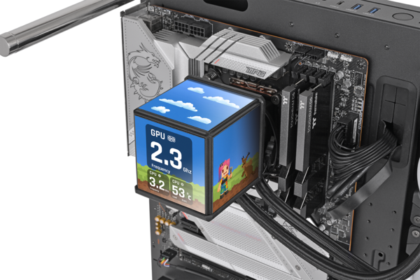 本製品をひと言で表すなら、“CPUクーラーの常識を軽々と超えてきた存在”。ポンプヘッド部分に4面ディスプレイを搭載し、まるで小型サイネージのように情報や映像を表示できるという、インパクト重視にもほどがある構成です! PCケースを開けた瞬間、まず視線を奪われるのは間違いありません。初見では「ここまでやる必要あるか?」と正直に感じてしまうほどのロマン溢れるパーツでしょう!