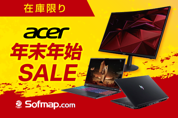 ソフマップは12月27日より、AcerのゲーミングモニターとゲーミングノートPCを特価で販売開始した。このセールは在庫限りのため、ゲーマーにとっては見逃せない機会となる。