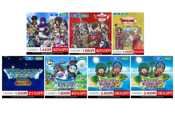 スマホ版「DQ」シリーズ本編3タイトル&「DQモンスターズ」シリーズ4タイトルがお買い得!年末年始特別セールを開催