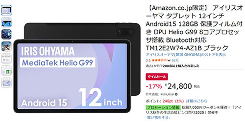 届いてすぐエンタメ三昧!フィルム貼付済みのアイリスオーヤマ12インチ大画面タブレットが17%オフ