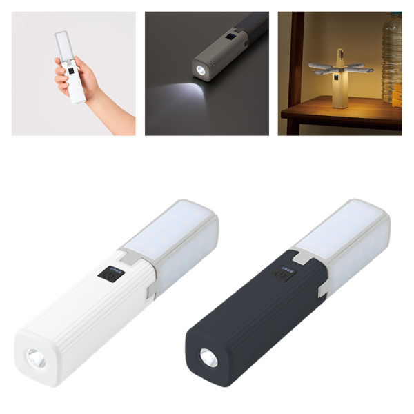 新型USBハンディライトは、ランタンや緊急用モバイルチャージャー機能を備えた3WAY仕様が特徴だ。開閉式のパネルにカラビナを使用して吊り下げることができ、キャンプなどのアウトドアシーンで有効活用できる。また、2000mAhのバッテリーを内蔵し、スマートフォンの緊急充電にも対応するという。