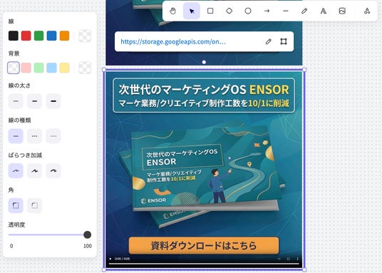 ENSORで作成した静止画バナーを、簡単な操作で動画化できる機能です。背景の動き、人物のモーション、CTAボタンのアニメーション、全体へのエフェクト追加など、多彩な表現が可能。静止画では伝えきれない商品の魅力を、動画ならではの訴求力で表現できます。