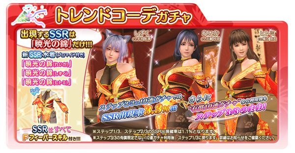 ■ヒトミやしずく、れいかのSSR水着「暁光の錦」が手に入る「トレンドコーデガチャ」を実施中