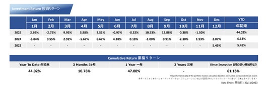 2025年12月25日にRL360°の運用実績(11月分まで)が更新されましたので、本リリースで数値をお知らせします。United BM Wealth Limitedがポートフォリオを構築し、運用したデータになります。オフショア投資をご検討の方は、参考にしてみてください。