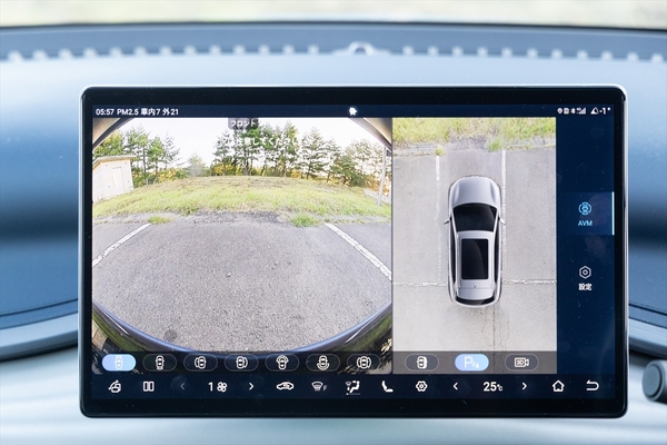 タッチスクリーンが90度回転する機構を設けているのもBYDの特徴。これはナビ画面を見る時にかなり便利です。回転はステアリング側からも出来るのも美質です。意外と便利なのが車庫に入庫する時などのバックカメラ表示時。縦位置の方が見やすいように思いました。