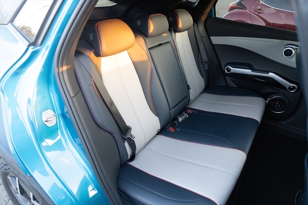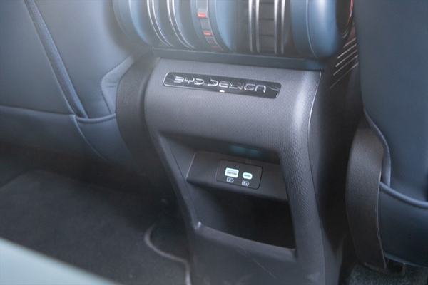 後席はフラットな床面と広い足元で快適そのもの。USBはType-AとType-Cの2系統が用意されていました。