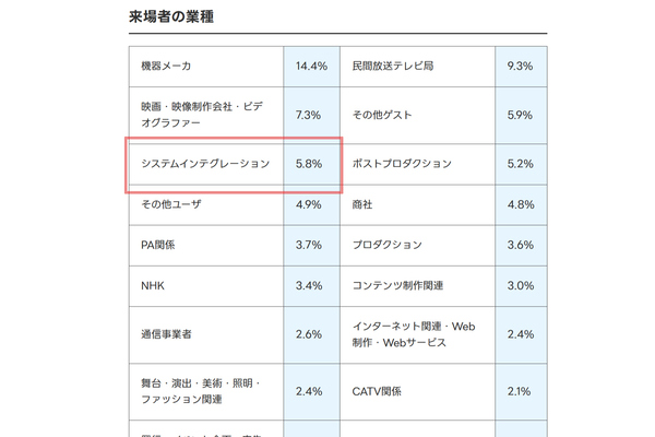 Inter BEE 2024の来場者内訳(出典:Inter BEE公式サイト)。システムインテグレーター(SIer)、ITエンジニアの方はまだまだ少ないようです