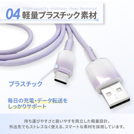 【 シズカウィル 】使い分けしやすい2タイプ対応。グラデーションが美しい USB / Type-C ケーブル