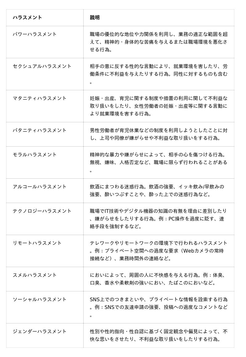1.検知できる、ハラスメントの種類一覧(抜粋)