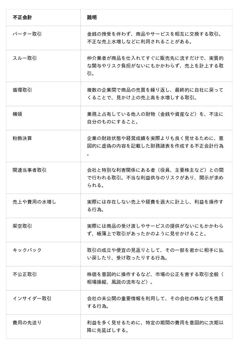 2.検知できる、不正会計リスクの種類一覧(抜粋)