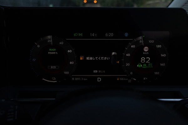 朝5時頃起きて、再びクルマを走らせます。広島あたりでついに給油ランプが点灯。そこで宮島SAで給油を慣行。この時点で約773km走行して燃費は27.7km/Lを記録。この数字、かなり良いと思います! ということで、東京を満タンで出ると、広島まで来れるということですね。