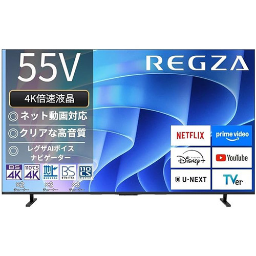 倍速液晶によるなめらかな映像表現、高画質処理エンジンによる見やすい映像、ウーファー内蔵の立体音響をバランスよく備えた55インチ4Kテレビです。大画面テレビへの買い替えを検討している方は、ぜひこの機会にチェックしてみてください。