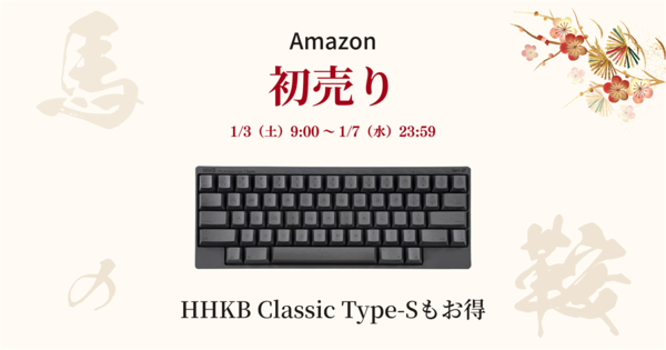PFUは2026年1月7日(水)23時59分まで、Amazon第1回スマイルSALEの初売りに参加する。「2026年は午年! カウボーイの使う馬の鞍のようにPCが変わっても入力デバイスは変わらずに。」をテーマに、HHKB Professional Classic Type-Sがセール初登場。HHKB Studioは過去最高の値引き率となっている。