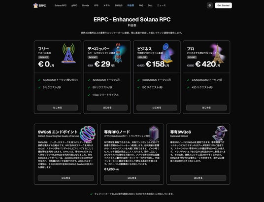 共有 Solana RPC、Unlimited エンドポイント、VPS については、それぞれ以下の料金表をご参照ください。